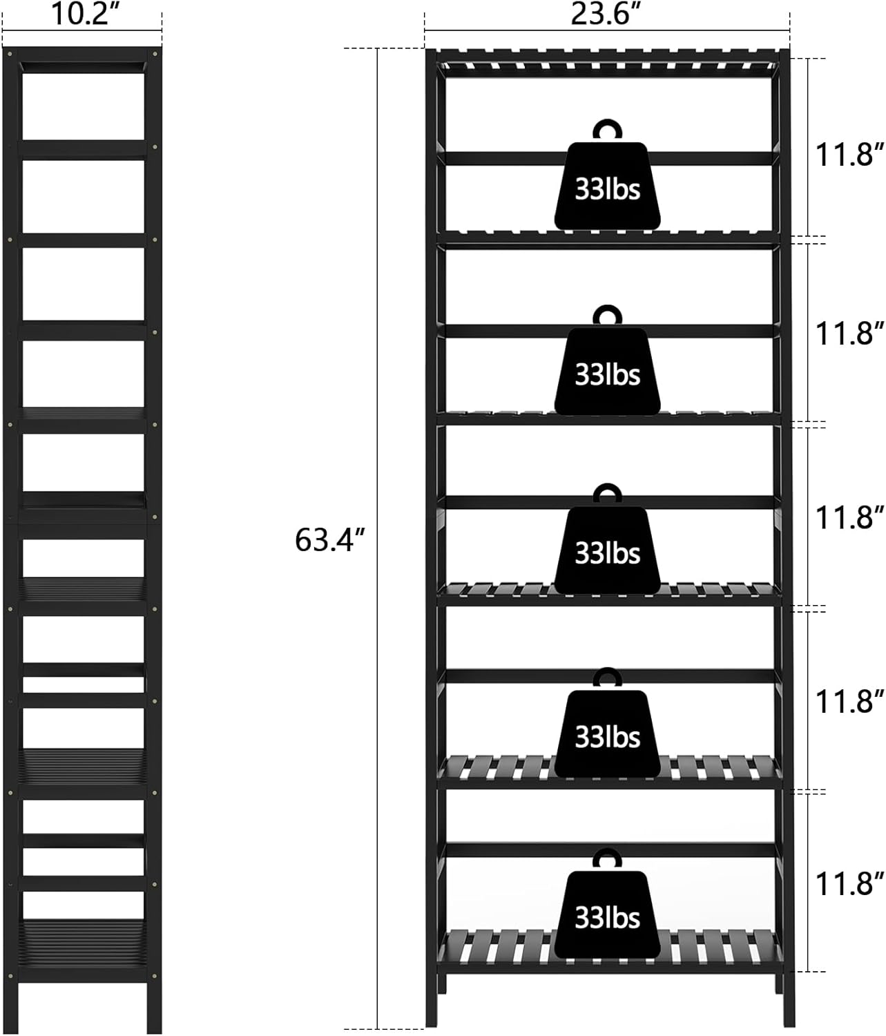 | Product Dimensions | 10.2"D x 23.6"W x 63.3"H |